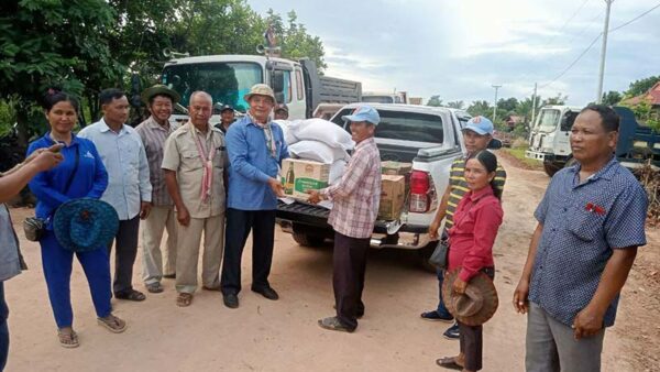 អនុប្រធានក្រុមការងារចុះជួយស្រុកជាំក្សាន្ដ និងជាប្រធានក្រុមការងារចុះជួយឃុំជាំក្សាន្ដនាំយកគ្រឿងឧបភោគបរិភោគផ្ដល់ជូនក្រុមការងារគ្រឿងចក្រកំពុងជុសជុលផ្លូវ