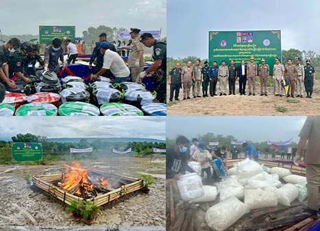 គ្រឿងញៀនជាង១តោន ដែលបង្ក្រាបបានកន្លងមក ត្រូវបានអាជ្ញាធរខេត្តព្រះវិហារ ដុតបំផ្លាញចោល