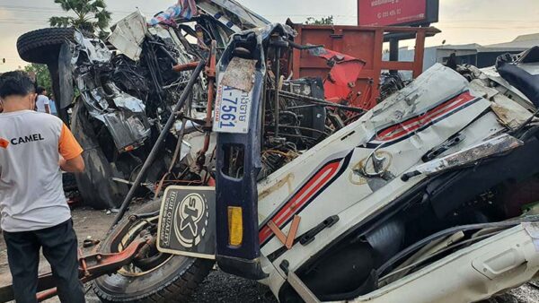 រថយន្ត2គ្រឿងបុកគ្នាពេញទំហឹងបណ្តាលអោយខ្ទេចទាំងសងខាងនិងរបួសមនុស្សធ្ងន់ស្រាលចំនួន4នាក់
