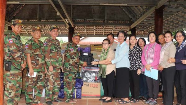 លោកជំទាវ មហាឧបាសិកា ខៀវ ស៊ីណា ជាចាន់តូ និងលោកជំទាវ ជា សិរី ទេសសារភិបាលធនាគារជាតិកម្ពុជា នាំយកអំណោយជាគ្រឿងឧបភោគ បរិភោគសម្ភារះថវិការមួយចំនួនផ្ដល់ជូន កងទ័ពជួរមុខ ទឹសប្រាសាទព្រះវិហារ