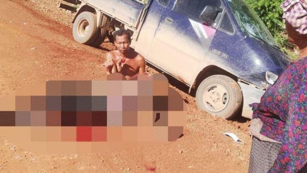 កម្មកធ្វើផ្លូវម្នាក់បានរងរបួសធ្ងន់គ្រាដែលជួបគ្រោះថ្នាក់រថយន្តដឹកជញ្ជូនឥវ៉ាន់បញ្ញើរបស់ក្រុមហ៊ុនវីរៈប៊ុនថាំ បុកជាមួយម៉ូតូកម្មករធ្វើផ្លូវឆេះខ្ទេចកាប៊ីនផ្នែកមុខ