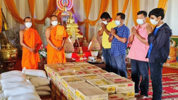 ព្រះវិសាលសត្ថា កង យ៉ុន ទទួលទេយ្យទានពីលោក ម៉ែន សំអឿន លោកស្រី យូ ណាវី ព្រមទាំងបុត្រ និងក្រុមហ៊ុន ហេងលាភហេង សម្រាប់ចែកដល់គ្រួសារងាយរងគ្រោះនៅក្នុងស្រុកកំពង់ត្រឡាច
