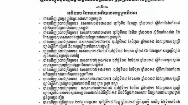 រដ្ឋបាលខេត្តព្រះវិហារ . សម្រេចផ្អាកអាជីវកម្មផ្ទះសំណាក់ និងអាហារដ្ឋាន លីហួត បន្ទាប់រកឃើញពាក់ព័ន្ធករណវិជ្ជមានកូវីដ១៩
