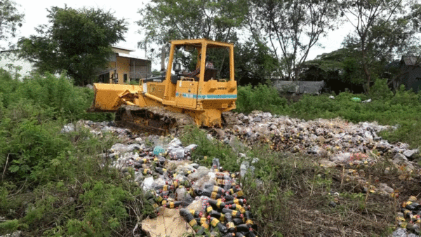 មន្ត្រីជំនាញសាខា ក.ប.ប ខេត្តបន្ទាយមានជ័យ កិនកម្ទេចចោលស្រាថ្នាំ តាំង គួយ ជិត៣ម៉ឺនដប ដែលបានសម្លាប់មនុស្សជិត10នាក់