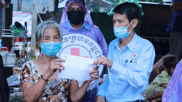 ប្រជាពលរដ្ឋរងគ្រោះដោយបាក់ច្រាំងទន្លេចំនួន ១៨ គ្រួសារ នៅស្រុកលើកដែក ទទួលអំណោយមនុស្សធម៌ពីសាខាកាកបាទក្រហម