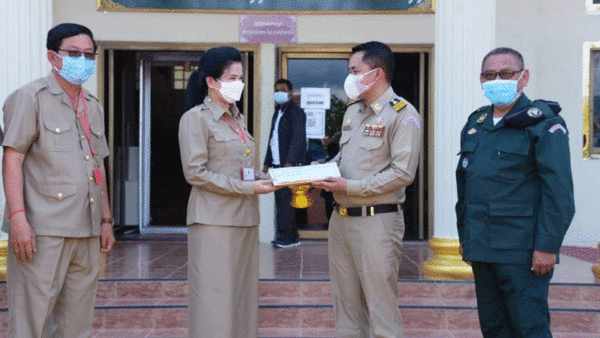 អាជ្ញាធរខេត្តស្វាយរៀង បាន ទទួលសម្ភារសុខាភិបាល និងគ្រឿងឧបភោគបរិភោគរបស់ បញ្ជាការដ្ឋានយោធាទីក្រុងហូជីមិញ នៃសាធារណរដ្ឋសង្គមនិយមវៀតណាម