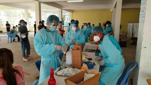 ប្រធានមន្ទីរសុខាភិបាលខេត្តស្វាយរៀង ដឹកនាំក្រុមគ្រូពេទ្យផ្លាស់វេនព្យាបាលនៅមណ្ឌលព្យាបាលកូវីដ19 ក្រុងបាវិត