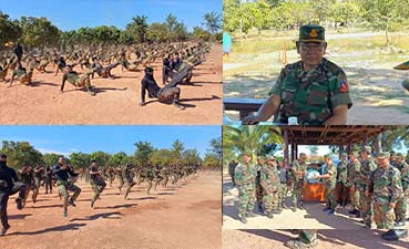 មេបញ្ជាការរង កងទ័ពជើងគោក មេបញ្ជាការ កងពលធំអន្តរាគមន៍លេខ៣ ចុះត្រួតពិនិត្យការហ្វឹកហ្វឺនក្បាច់គុន កងយោធពលខេមរភូមិន្ទរបស់សិក្ខាកាម នៅវរសេនាតូចអន្តរាគមន៍លេខ៣៩៤ របស់ទីបញ្ជាការ កងពលតូចអន្តរាគមន៍លេខ៩