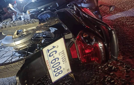 បេីកបរម៉ូតូវ៉ាជែងមិនប្រុងប្រយ័ត្ន បុកជាម៉ូតូ១គ្រឿងផ្សេងទៀត រងរបួសធ្ងន់ស្រាល០៤នាក់ នៅក្រុងក្រចេះ