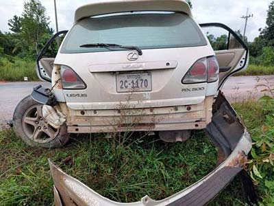 គួរឱ្យរន្ធត់ករណីគ្រោះថ្នាក់ចរាចរណ៍រវាងរថយន្តសាំយ៉ុង និងរថយន្ត លុចស៊ីស RX 300 បុកគ្នាពេញទំហឹង បណ្ដាលឲ្យស្លាប់ម្នាក់និងរងរបួសបួននាក់