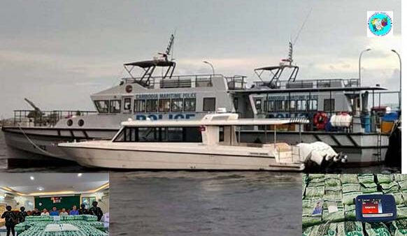 សមត្ថកិច្ចជំនាញបង្ក្រាបគ្រឿងញៀនជិត១តោន លើផ្ទៃសមុទ្រ ឃាត់ខ្លួនជនសង្សយ័ជាជនជាតិចិន៥នាក់ ដកហូតមធ្យោបាយអូប័រចំនួន០១គ្រឿង និងទូកឈើចំនួន០១គ្រឿងនៅខេត្តព្រះសីហនុ !