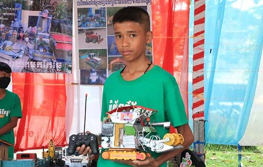 ផ្ទុះការចាប់អារម្មណ៍កុមារាម្នាក់ យកសំរាមច្នៃជាម៉ាស៊ីន ច្រូតស្រូវ ខ្នាតតូចអាចបញ្ជាតេលេបាន