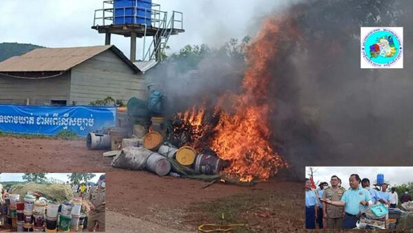អាជា្ញធរខេត្តកែប ដុតបំផ្លាញឧបករណ៍ នេសាទខុសច្បាប់ នៅស្រុកដំណាក់ចង្អើរ