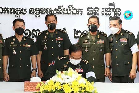 នាយឧត្តមសេនីយ៍ គន់ គីម ទេសរដ្ឋមន្រ្តី រួមនិងសហការី អញ្ជើញគោរពវិញ្ញាណក្ខន្ធ សព ឧត្តមសេនីយ៍ឯក ធន ធឿន អនុរដ្ឋលេខាធិការក្រសួងការពារជាតិនៅគេហដ្ឋានរបស់ឯកឧត្តមស្ថិតនៅក្នុងសង្កាត់ខ្សាម ក្រុងកំពង់ឆ្នាំង