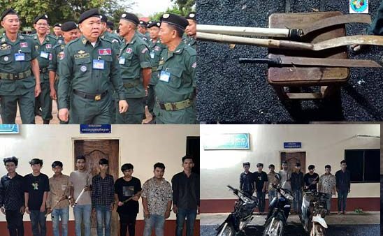 កម្លាំងនគរបាលខេត្តព្រះវិហារ ឃាត់ខ្លួនក្រុមក្មេងទំនើង៩នាក់ ដែលតែងតែជិះម៉ូតូបង្ហោះបង្កការអុកឡុកក្នុងក្រុងព្រះវិហារ, ដកហូតដាវ និងកាំបិតផ្គាក់ចំនួន៣ដើម