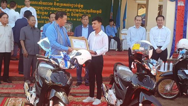 សិស្សនិទ្ទេសA.ទទួលបានរង្វាន់លើកទឹកចិត្តពីថ្នាក់ដឹកនាំខេត្តកំពង់ធំ.គឺម៉ូតូចំនួន៤៧គ្រឿង