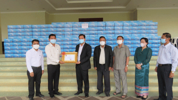 គណៈកម្មការ ប្រយុទ្ធ ប្រឆាំង នឹង ជំងឺ កូវីដ -១៩ ខេត្តកំពង់ចាម ទទួល ថវិកា និង សំភារៈ ពី មន្ទីរ អភិវឌ្ឍន៍ ជនបទ និង អង្គការ កម្ពុជា ជួយ ស្ត្រី មាន វិបត្តិ