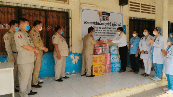 ស្នងការនគរបាលខេត្តកំពង់ឆ្នាំងបាននាំយកគ្រឿងសម្ភារះហូបចុកជូនដល់ក្រុមគ្រូពេទ្យដែលកំពង់ប្រចាំការចាក់ថ្នាំការពាជម្ងឺកូវិដ១៩នៅមន្ទីពេទ្យបង្អែកខេត្ត