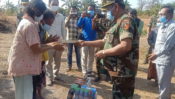 មេបញ្ជាការងកងទព័ជើងគោកមេបញ្ជាការកងពលធំអន្តរាគមន៏លេខ៣នាំអំណោយគ្រឿងឩបភោកបរិភោគរួមនឹងថវិការប្រគល់ជូនប្រជាពលរដ្ឋទីទាល់ក្រ១គ្រួសារនៅក្នងឃុំមរកត ស្រុកជាំក្សាន្ត