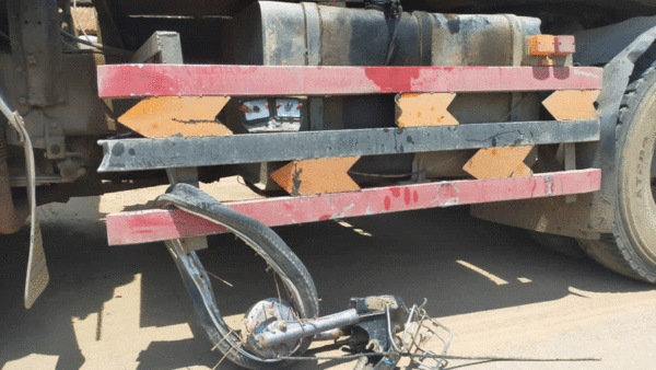 រថយន្តធុនធំសណ្តោងរ៉ឺម៉កបើកបុកហើយកិនលើម៉ូតូបណ្តាលឱ្យបុរសម្នាក់ស្លាប់នៅស្រុកស្អាង