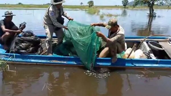 របាំងស្បៃមុង ២២ កន្លែងត្រូវបានកម្លាំងផ្នែករដ្ឋបាលជលផលកំពង់ប្រាសាទសហការគ្នាចុះបង្ក្រាប