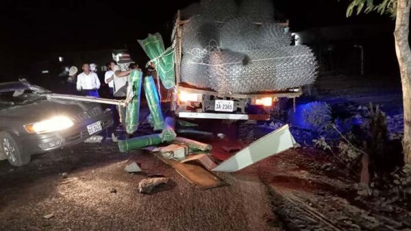 ស្រវឹងកុំបើកបរបើបើកបរកុំបើកបុក៖រថយន្តCAMRYឆ្លាមម្ចាស់បើកបរក្នុងស្ថានភាពស្រវឹងរេចង្កូតចូលមកបុករថយន្តដឹកសំណាញ់ដែកខូតខាចយ៉ាងដំណំតែសណាងរងរបួសស្រាលនៅស្រុកស្វាយទាប