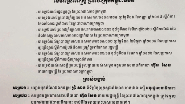 ព្រះមហាក្សត្រ ចេញព្រះរាជក្រឹត្យបញ្ចប់មុខតំណែង លោក ព្រំ សាន ពីទីប្រឹក្សាក្រសួងព័ត៌មាន