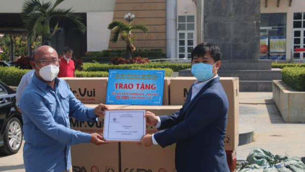 ឯកឧត្តម តូច ប៉ូលីវ៉ា តំណាងដ៏ខ្ពង់ខ្ពស់លោកជំទាវ កិត្តិសង្គហ បណ្ឌិត ម៉ែន សំអន បានដឹកនាំសហការី ចូលរួមក្នុងពិធី ទទួលម៉ាសចំនួន ៣០.០០០ម៉ាស់ របស់អគ្គកុងស៊ុល កម្ពុជា ប្រចាំទីក្រុងហូជីមិដែល ជាជំនួយរបស់សមាគម មិត្តភាព វៀតណាម -កម្ពុជា ខេត្តតៃនិញប្រគល់ជូនដល់ជូន ដល់រដ្ឋបាលខេត្តស្វាយរៀង
