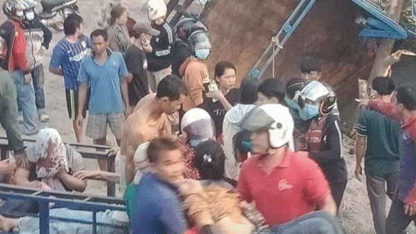 ព័ត៌មានបឋម៖មុននេះបន្តិចមានរថយន្តដឹកកម្មករកម្មការិនីរោងក្រឡាបផ្ងារជើងមានអ្នករងរបួសធ្ងន់ស្រាល៦០អ្នកនៅក្រុងបាវិត