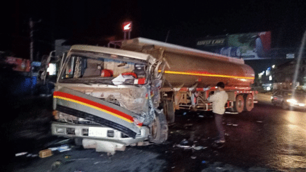 រថយន្ដស្ទូចផ្ទុះកង់រេចង្កូតបុកជាមួយរថយន្តដឹកប្រេងពេញទំហឹងរបួសធ្ងន់ស្រាល៣នាក់
