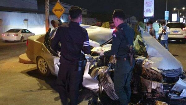 បុរស ម្នាក់ បាន បើករថយន្ត បា ឡែ ន មួយគ្រឿង លឿន ខ្លាំងពេក ជ្រុល ទៅបុក ពីក្រោយរថយន្ត កុងតឺន័រ បណ្តាល ឲ្យ រថយន្ត បង្ក ខូច ខាតផ្នែកខាងមុខទាំងស្រុង