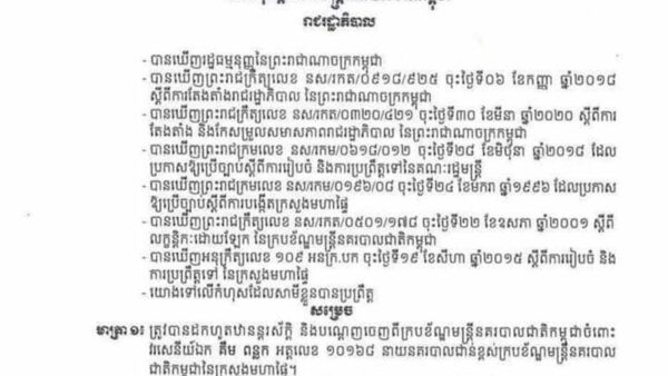 រាជរដ្ឋាភិបាលកម្ពុជា បានចេញអនុក្រឹត្យសម្រេចដកស័ក្តិ និងបណ្តេញលោកវរសេនីយ៍ឯក គឹម ពន្លក អធិការស្រុកកំរៀង ខេត្តបាត់ដំបង ចេញពីក្របខណ្ឌមន្ត្រីនគរបាលជាតិ