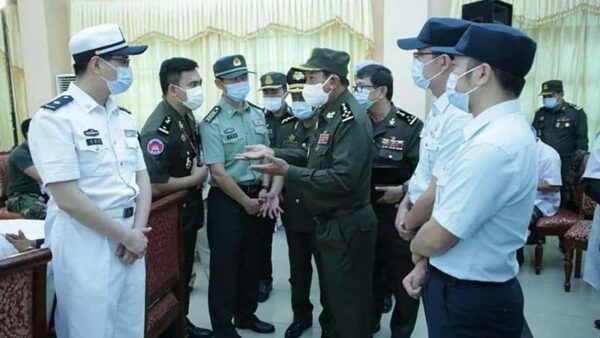 នាយ ពលទាហាន នៃបញ្ជាការដ្ឋានអង្គរក្ស បានមកជួបជុំគ្នាដើម្បីចាក់វ៉ាក់សាំងស៉ីណូហ្វាម ប្រឆាំងជំងឺកូវីដ-១៩ ដែលជាជំនួយរបស់រដ្ឋាភិបាលសាធារណៈរដ្ឋប្រជាមានិតចិន