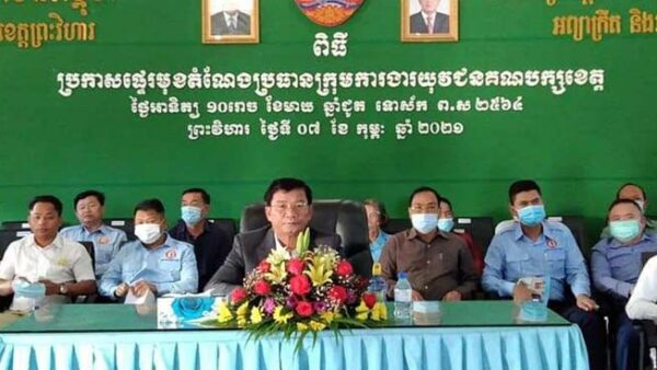 ប្រកាសផ្ទេរមុខតំណែងប្រធានក្រុមការងារយុវជនគណបក្សប្រជាជនកម្ពុជាខេត្តព្រះវិហារ