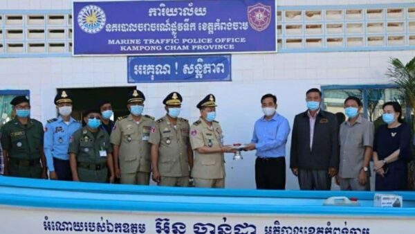 អភិបាលខេត្តកំពង់ចាម ប្រគល់ទូកម៉ាស៉ីន ដល់ការិយាល័យនគរបាលចរាចរណ៍ផ្លូវទឹក ដើម្បីបង្ក្រាបបទល្មើស