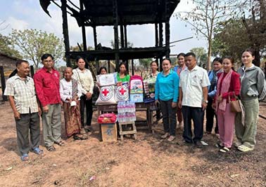 ស្ត្រីវ័យចំណាស់រងគ្រោះដោយអភ្គិភ័យ ទទួលបានអំណោយថវិកា និងសម្ភារពីក្រុមការងារចុះជួយឃុំគូលែនត្បូង និងអំណោយមនុស្សធម៌របស់កាកបាទក្រហមកម្ពុជា