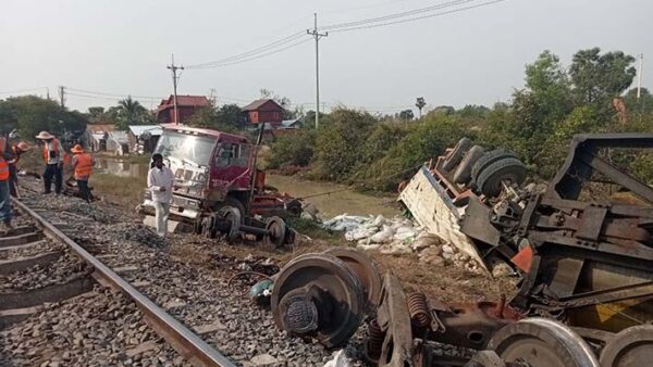 ទូរទេះភ្លើងដឹកប្រេងពេញដាច់ពីក្បាលរបស់វា បុករថយន្តមួយគ្រឿងដែលឆ្លងកាត់ផ្លូវ នៅស្រុកកណ្ដាលស្ទឹង