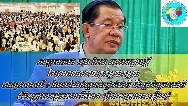 សម្តេចតេជោ ហ៊ុន សែន នាយករដ្ឋមន្ត្រីនៃព្រះរាជាណាចក្រកម្ពុជាកម្ពុជាមានប្រសាសន៍ ៖ ណែនាំដល់ស្ថាប័នថ្នាក់ជាតិ នឹងថ្នាក់ក្រោមជាតិ (មិនត្រូវយកអ្នកសារព័ត៌មាន ធ្វើជាសត្រូវនោះឡើយ)