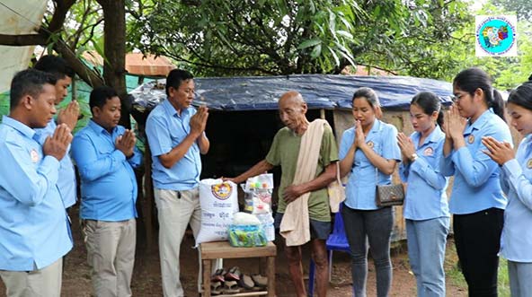 លោកតា ម៉ម ស៊ន់ អាយុ៩០ឆ្នាំទទួលអំណោយជាគ្រឿងឧបភោគបរិភោគពីសាខាសមាគមសិស្ស និស្សិត បញ្ញវន្ត ក្មេងវត្តខេត្តព្រះវិហារ