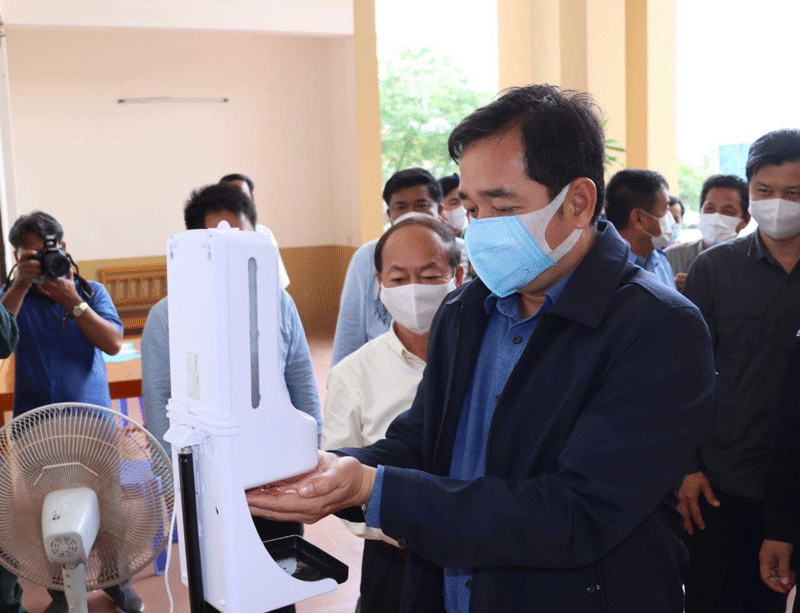 កំពង់ចាម : ឯកឧត្តម អ៊ុន ចាន់ដា អភិបាលខេត្តកំពង់ចាម បានណែនាំ ដល់ មន្ត្រី ពាក់ព័ន្ធ ឲ្យ ក្តាប់មុខសញ្ញាដែលប៉ះពាល់ដោយប្រយោល និងដោយផ្ទាល់ ជាមួយ អ្នក វិជ្ជមាន កូវីដ -១៩ ដើម្បី ធ្វើចត្តាឡីស័ក ឲ្យបានត្រឹមត្រូវតាមវិធានសុខាភិបាល ក្នុង នោះ អាជ្ញាធរ រួមនឹង មន្ត្រី ពាក់ព័ន្ធ ត្រូវពិនិត្យ និងតាមដានឲ្យបានជាប់ជាប្រចាំ ដើម្បីជួយឧបត្ថម្ភ គាំទ្រដល់ប្រជាពលរដ្ឋ ដែលមានជីវភាពខ្វះខាត ឲ្យ បានទាន់ពេលវេលា ផងដែរ ។ ការ ជំរុញ យ៉ាង ដូច្នេះ ក្នុង កិច្ចប្រជុំបន្ទាន់ពាក់ព័ន្ធករណីកម្មករ កម្មការីនី ប៉ះពាល់នឹងអ្នក វិជ្ជមាន កូវីដ-១៩ នាព្រឹក ថ្ងៃ ទី ២២ ខែមេសា ឆ្នាំ ២០២១ នៅ សាលា ស្រុក ស្រីសន្ធរ ។