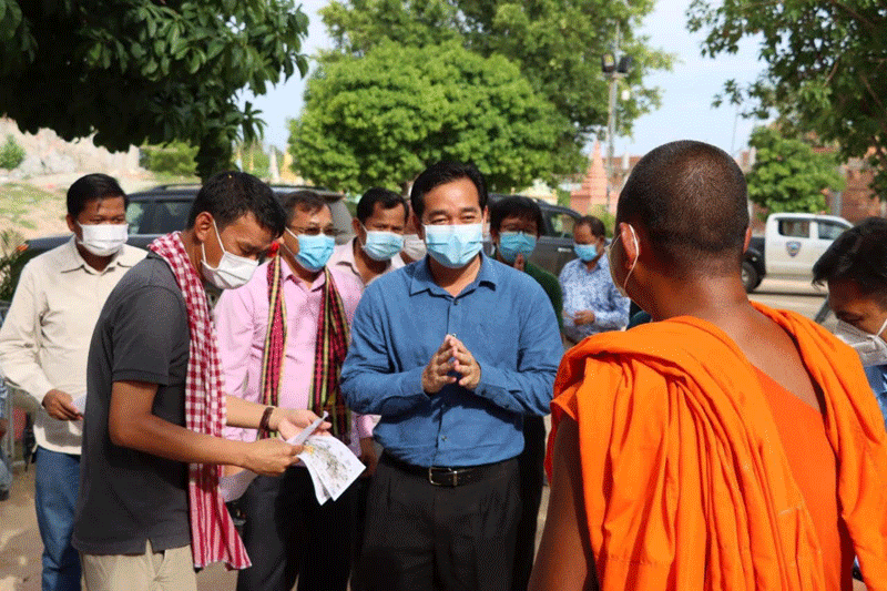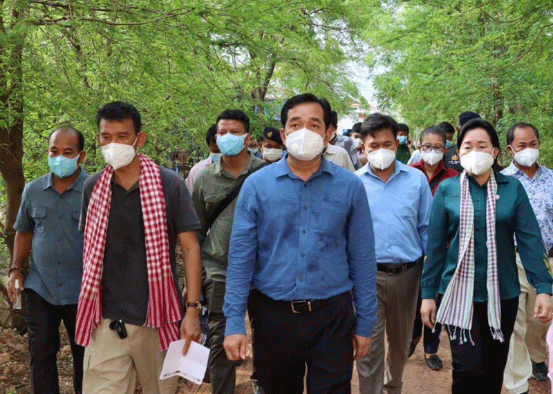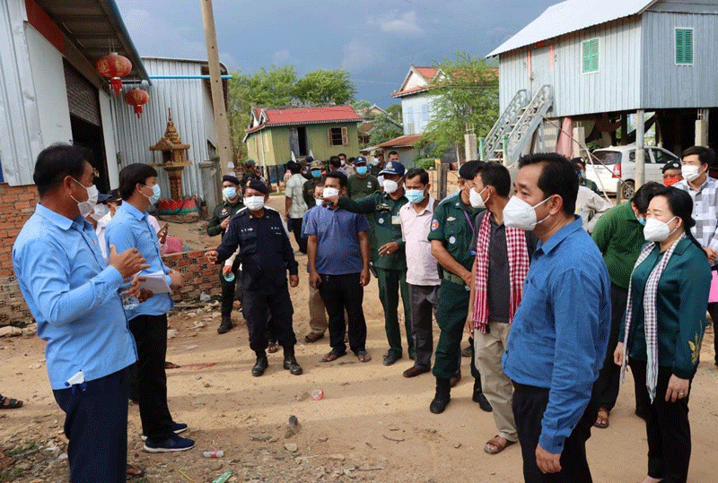 កំពង់ចាម : ឯកឧត្តម អ៊ុន ចាន់ដា អភិបាលខេត្ត កំពង់ចាម អមដំណើរដោយ អភិបាលរងខេត្ត និង មន្ត្រី ពាក់ព័ន្ធ នារសៀល ថ្ងៃ ទី ២២ ខែមេសា ឆ្នាំ ២០២១ នេះ បាន អញ្ជើញ ចុះ ពិនិត្យ ស្ថានភាព ជាក់ស្ដែង ដល់ លំនៅឋាន របស់ ស្ត្រី ឈ្មោះ ខៀវ ដាឡៃ អាយុ២៨ឆ្នាំ ជាមន្ត្រីស្ម័គ្រចិត្ត នៅមណ្ឌលសុខភាពសំបូរ រស់នៅភូមិសំបូរ ឃុំសំបូរ ស្រុកបាធាយ បន្ទាប់ ពី រកឃើញ វិជ្ជមានកូវីត-១៩ ដោយ មានមនុស្ស ៨នាក់ បានប៉ះពាល់ដោយផ្ទាល់ និង១៨នាក់ ប៉ះពាល់ដោយប្រយោល ដើម្បី ជំរុញ ដល់ អ្នក ពាក់ព័ន្ធ ទាំងអស់ ត្រូវ ធ្វើចត្តាឡីស័ក ឲ្យបានត្រឹមត្រូវតាមវិធានសុខាភិបាល ។