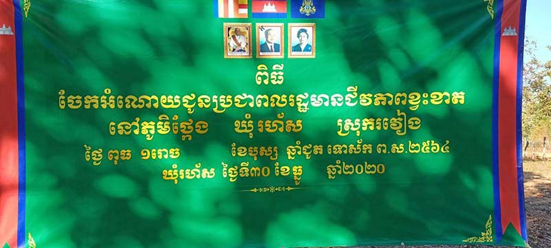ព្រះវិហារៈ នៅព្រឹកថ្ងៃទី៣០ ខែធ្នូ ឆ្នាំ២០២០ ឯកឧត្តម ប្រាក់ សុវណ្ណ អភិបាលខេត្តព្រះវិហារ បានដឹកនាំក្រុមការងារនាំយកនូវអំណោយដ៏ថ្លៃថ្លារបស់សម្តេចតេជោ ហ៊ុន សែន នាយករដ្ឋមន្រ្តីនៃព្រះរាជាណាចក្រកម្ពុជា មកប្រគល់ជូនប្រជាពលរដ្ឋមានជីវភាពខ្វះខាតចំនួន ៥០គ្រួសារ នៅភូមិថ្កែង ឃុំរហ័ស ស្រុករវៀង ខេត្តព្រះវិហារ។