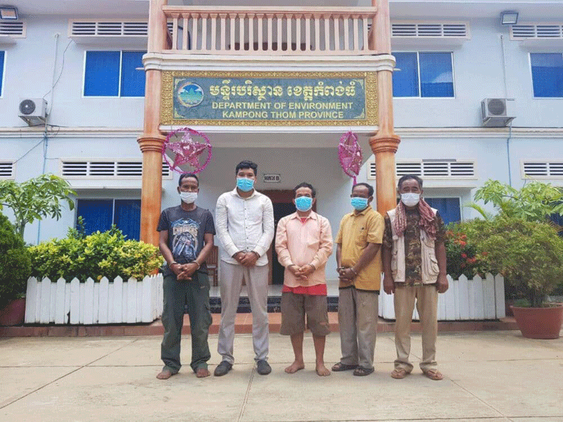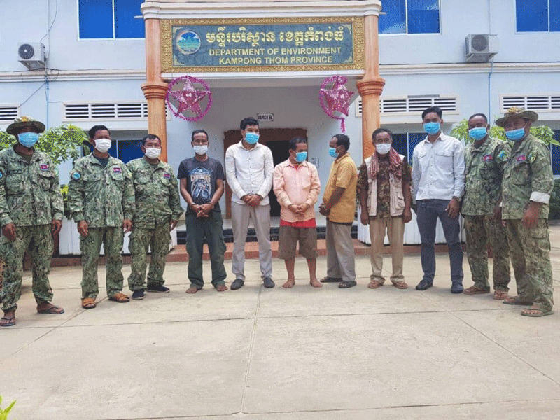 យោងតាមរបាយការណ៍របស់មន្រ្ដីការពារតំបន់ធម្មជាតិខេត្តកំពង់ធំបានសរសរថា កម្លាំងសហការបានសំរេចឡោមព័ន្ធចាប់ខ្លួនជនសង្ស័យនិងបក្សពួកចំនួន៥នាក់ កាលពីយប់វេលាម៉ោង៩និង៥៤នាទី ដែលមានឈ្មោះដូចខាងក្រោម= ១ ឈ្មោះ នាក់ សឿង ភេទប្រុស ជាអ្នកសារព័ត៏មាន។ ២ ឈ្មោះ ទុយ សុខខុម ភេទប្រុស ជាសមាគមន៍អ្នកអភិរក្សធនធានធម្មជាតិបរិស្ថាន ។ ៣ ឈ្មោះ សុខពិសី ភេទប្រុស ជាប្រជាកសិករ។ ៤ ឈ្មោះ គង់ សុផាន ភេទប្រុស ជាប្រជាកសិករ ។៥ ឈ្មោះ មឿ ម៉ន ភេទប្រុស ជាប្រជាកសិករ។ និងរឹបអូសបានសម្ភារះមធ្យោបាយ មួយចំនួន រួមមានរថយន្ដ២គ្រឿង វិទ្យុទាក់ទង២គ្រឿង កំបិតផ្គាក់ចំនួន ៤ដើម។