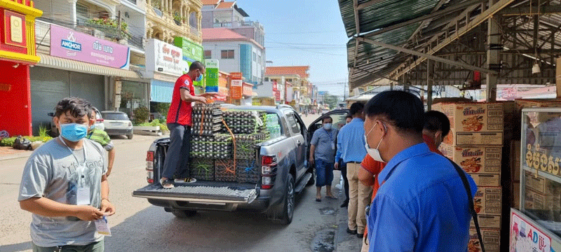 ខេត្តបន្ទាយមានជ័យ៖ អាជ្ញាធរក្រុងប៉ោយប៉ែតដាក់លក់ទំនិញតម្លៃក្រោមទីផ្សារដើម្បីសម្រួលដល់ ប្រជាពលរដ្ឋ ក្រោយពីតំបន់មួយចំនួនក្នុងក្រុងត្រូវបានបិទខ្ទប់ ការពារជំងឺការរីករាលដាលនៃជំងឺកូវីដ១៩ បន្ទាប់ពីរកឃើញវិជ្ជាមានលើជនជាតិឥណ្ឌូនេស៊ីម្នាក់ ខណៈដែលមានជនឆ្លាតឱកាសតំឡើងថ្លៃទំនិញ ត្រូវបានអាជ្ញាធរចុះណែនាំអប់រំ បើមិនអនុវត្តលក់ដូរតម្លៃធម្មតាវិញទេ និងចាត់វិធានការច្បាប់។