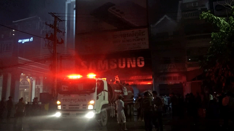 ខេត្តបន្ទាយមានជ័យ៖ អគ្គីភ័យឆេះហាង វុយសេង លក់ទូរសព្ទដៃក្រុងប៉ោយប៉ែត សមត្ថកិច្ចប្រើ រថយន្តទំលុះទ្វារដើម្បីអន្តរាគមន៍ពន្លត់ ហេតុការណ៍នេះ បានបង្កការភ្ញាក់ផ្អើលទាំងយប់ នៅវេលាម៉ោ២៣ និង៣០នាទីយប់អាធ្រាតុ ថ្ងៃទី២៥ ខែមេសា ឆ្នាំ២០២១ ស្ថិតនៅក្នុងអូរជ្រៅ សង្កាត់ប៉ោយប៉ែត ក្រុងប៉ោយប៉ែត។
