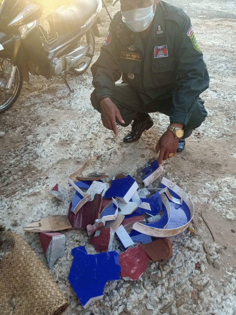 សមត្ថកិច្ចបានបន្តថា ជនសង្ស័យបានជិះកង់មកពីភ្នំពេញ មកដល់ចំណុចកើតហេតុបានចូលទៅ មុខផ្ទះជនរងគ្រោះក៏យកឥដ្ឋការ៉ូរបស់ជនរងគ្រោះដែលដាក់តាំងលក់នៅក្រៅរបងបោកកំទេចចោល អស់ជាច្រើនដុំ និងបោកបង់ថ្មអង្គុយកំទេចចោលមួយទៀត រួចបានយកអំបែងឥដ្ឋការូ គប់ទៅលើជញ្ជាំងផ្ទះនិងផ្លាកយីហោជនរងគ្រោះជាច្រើនទៀតបណ្ដាលឱ្យបាក់បែកខូចខាត។