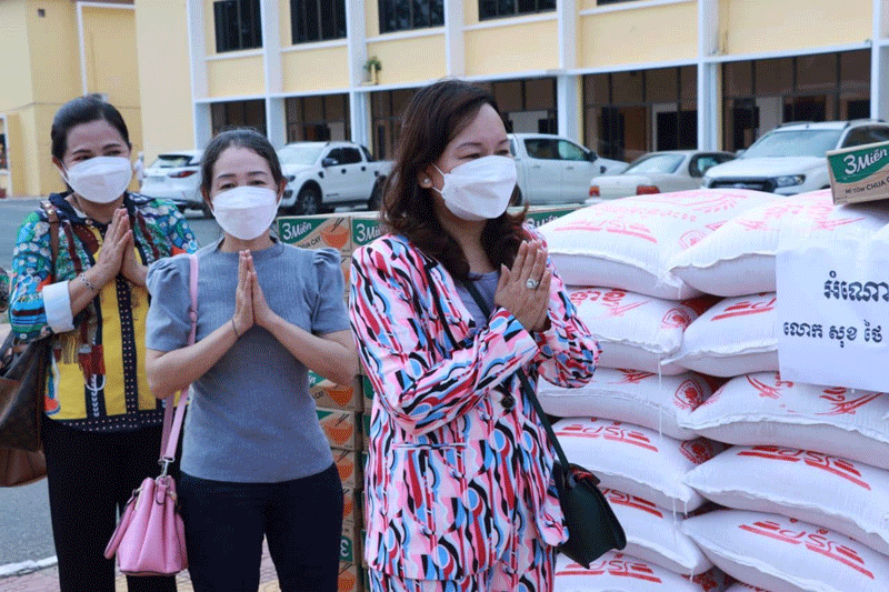៣. លោកឧកញ៉ា សុខ ថៃ និងលោកជំទាវ ចាន់ នី បានឧបត្ថម្ភនូវ អង្ករចំនួន ៥ តោន មីង ៥០០ កេសតូច និងទឹកស៊ីអ៊ីវ ១៥០យួរ។