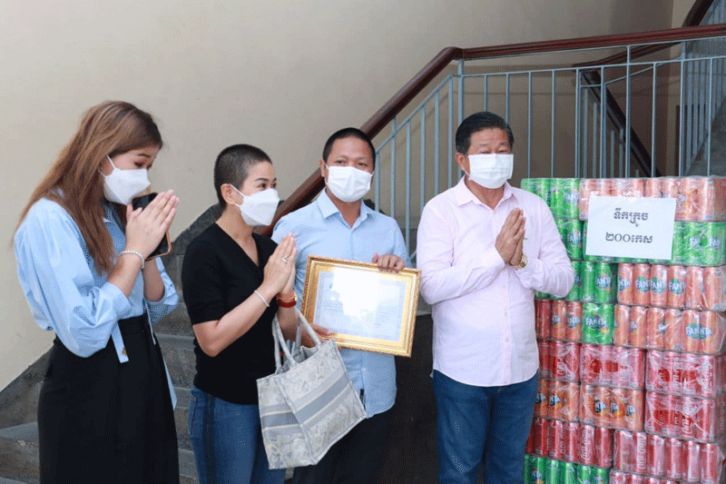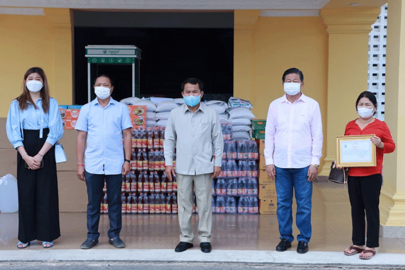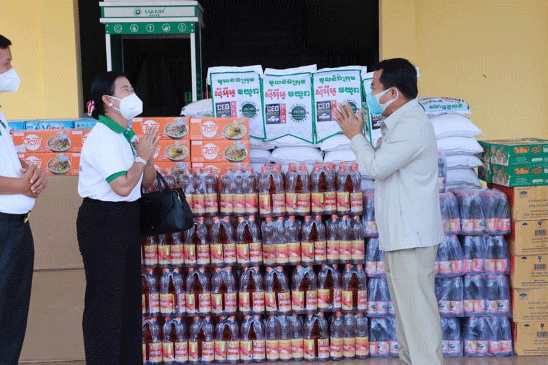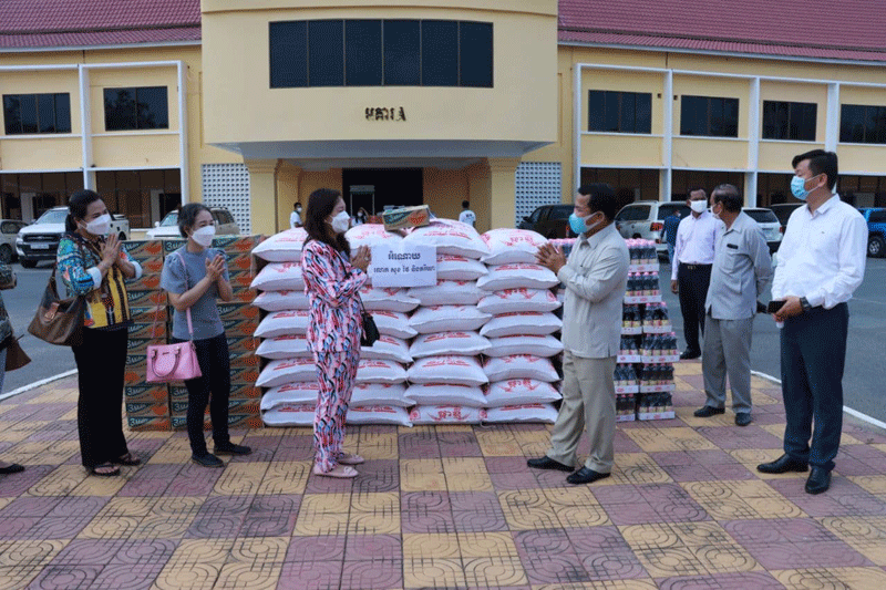 ២. លោកស្រី ប៉ិច សុគន្ធារី ស្ថាបនិកក្រុមហ៊ុន ស៊ី អ៊ី អូ យូរា បានឧបត្ថម្ភនូវ អង្ករចំនួន ២ តោន មី ៥កេសធំ ទឹកត្រី ៥០ យួរ ទឹកស៊ីអ៊ីវ ៥០យួរ ម៉ាស ៥កេសធំ ត្រីខ ៥កេសធំ ទឹកបរិសុទ្ធ ៥០ កេស អាលកុល ៣ កាន និងថវិកា ៣ លានរៀល។