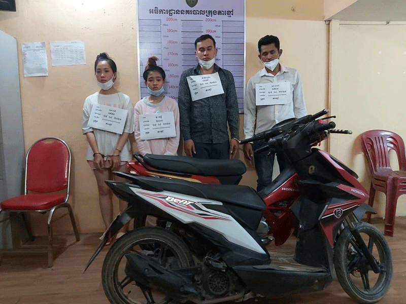 កណ្តាល ៖ ជនសង្ស័យប្រុសស្រី៤នាក់ត្រូវបានសមត្ថកិច្ចចម្រុះឃាត់ខ្លួន ក្នុងករណីជួញដូរដោយខុស ច្បាប់នូវសារធាតុញៀន នៅថ្ងៃទី២៨មេសាឆ្នាំ២០២១វេលាម៉ោង១១និង៣០នាទី យប់នៅចំណុច លើផ្លូវបេតុង ភូមិដើមគរ សង្កាត់ដើមមៀន ក្រុងតាខ្មៅ ខេត្តកណ្តាល។ ប៉ូលិសបញ្ជាក់ថា ជនសង្ស័យ៤នាក់រួមមាន ១-ឈ្មោះទន ចាន់នី ភេទប្រុស អាយុ៣៤ឆ្នាំរស់នៅភូមិជំពុះក្អែក សង្កាត់ព្រែកថ្មី ខណ្ឌច្បាអំពៅ មុខរបរលក់បន្លែ,២-ឈ្មោះថា រចន្នី ភេទស្រី អាយុ១៨ឆ្នាំ រស់នៅភូមិស្នេហ៍ ឃុំធាយ ស្រុកបាភ្នំ ខេត្តព្រៃវែង,សព្វថ្ងៃស្នាក់នៅផ្ទះជួលភូមិព្រែកសំរោង០២ សង្កាត់- ក្រុងតាខ្មៅ ខេត្តកណ្តាលមុខរបរនៅផ្ទះ, ៣-ឈ្មោះលី គឹមស្រៀង ភេទប្រុស អាយុ៣២ឆ្នាំរស់នៅភូមិជំពុះក្អែក សង្កាត់ព្រែកថ្មី ខណ្ឌច្បារអំពៅ សព្វថ្ងៃស្នាក់នៅផ្ទះជួលភូមិលេខ០១ សង្កាត់ស្វាយរលំ ក្រុងតាខ្មៅ ខេត្តកណ្តាល មុខរបរ លក់ដូរនិង៤-ឈ្មោះសុខ ធាវី ភេទស្រីអាយុ២៩ឆ្នាំ រស់នៅសង្កាត់ផ្សារថ្មី២ ខណ្ឌដូនពេញ សព្វថ្ងៃស្នាក់នៅភូមិលេខ០១ សង្កាត់ស្វាយរលំ ក្រុងតាខ្មៅខេត្តកណ្តាល មុខរបរលក់ដូរ។ វត្ថុតាងចាប់យករួមមាន ម៉ូតូ០២គ្រឿង(ម៉ាកBEAT ពណ៌សលាយផ្កាឈូក ស្លាកលេខភ្នំពេញ1HU-5667និងម៉ាកសេ១២៥ស៊េរីឆ្នាំ២០២១ពណ៌ក្រហម ស្លាកលេខភ្នំពេញ 1TS-3357,សារធាតុញៀនចំនួន០៦កញ្ចប់ធំ,ទូរស័ព្ទចំនួន០៤គ្រឿង,Nចុចពិល០១ ពណ៌ខៀវ, OPPOពណ៌ក្រហម០១,VIVOពណ៌ទឹកសមុទ្រ០១និងអាយហ្វូន១១ប្រូពណ៌ប្រផេះ ។ប៉ូលិសបន្តថា ដំបូងលោកមេភូមិដើមគរឈ្មោះឡឹក កុសល បានដឹកនាំកម្លាំងប្រជាការពារចុះល្បាត តាមមូលដ្ឋានហើយប្រទះឃើញជនសង្ស័យ៤នាក់ដោយមានការសង្ស័យក៏ឃាត់សួរនាំរួចរាយការណ៍ជួនលោកមេប៉ុស្តិ៍នាំកម្លាំងចុះទៅដល់ចំណុចកើតហេតុ រួចនាំជនសង្ស័យទាំង០៤នាក់យកមកប៉ុស្តិ៍ ធ្វើការឆែកឆេរតែរកមិនឃើញមានវត្ថុតាងអ្វីឡើយ។រយៈពេល០៥នាទីក្រោយមកលោកមេភូមិដើមគរបានរាយការណ៍តាមរយៈទូរស័ព្ទមកលោកមេប៉ុស្តិ៍ថា «បានរកឃើញថ្នាំញៀនចំនួន០១ថង់ស្មើ៦ កញ្ចប់ធំដែលលាក់ទុកនៅក្រោមដុំថ្មកន្លែងឈ្មោះសុខ ស្រីវីអង្គុយពីលើ។បន្ទាប់មកលោកមេប៉ុស្តិ៍ បានរាយការណ៍មកលោកអធិការនាំជនសង្ស័យរួមជាមួយវត្ថុតាងមកផ្នែកប៉ូលិសជំនាញក្រុងតាខ្មៅកសាងសំណុំរឿងចាត់ការតាមនីតិវិធីច្បាប់៕ដោយ ភាវុន