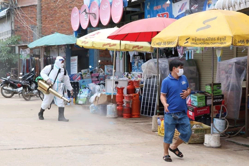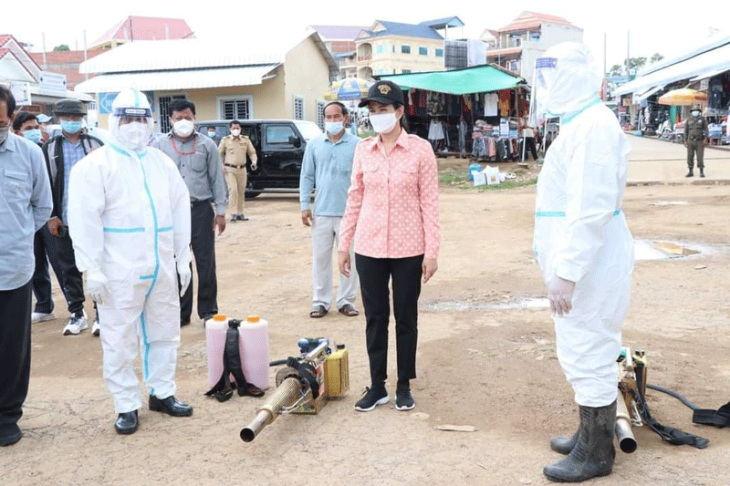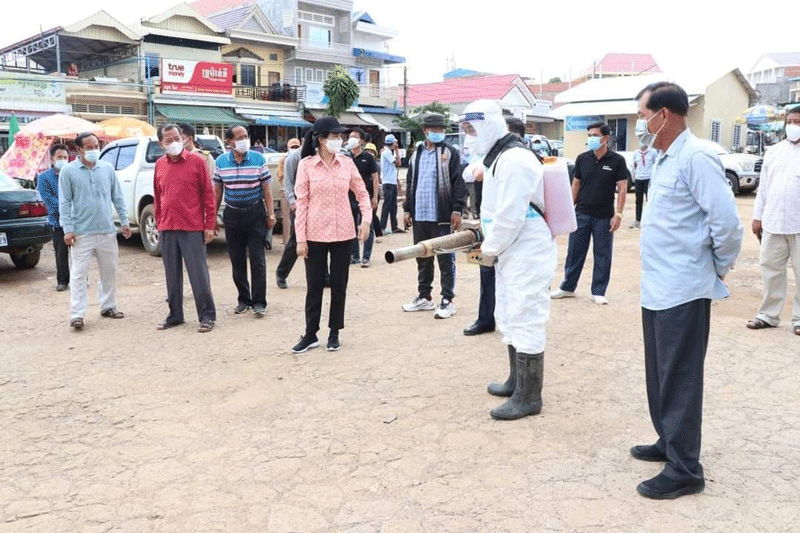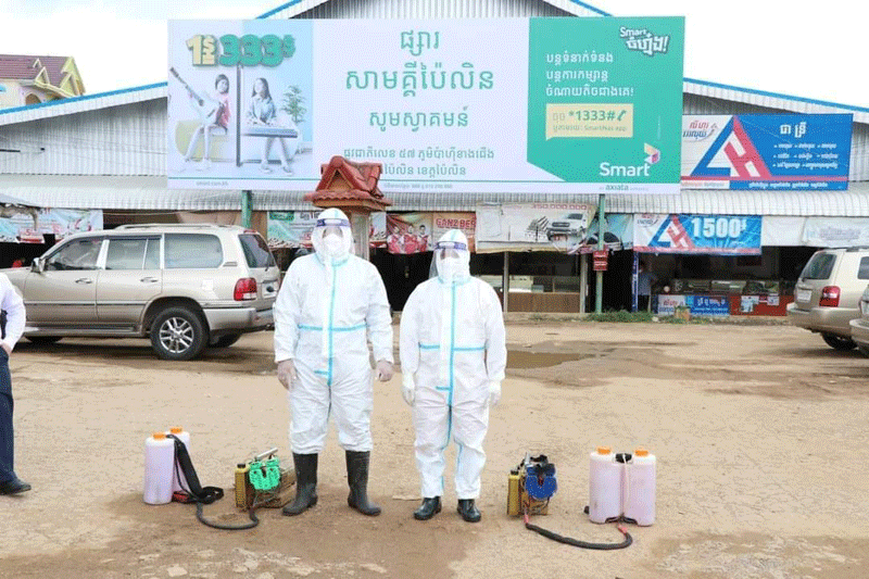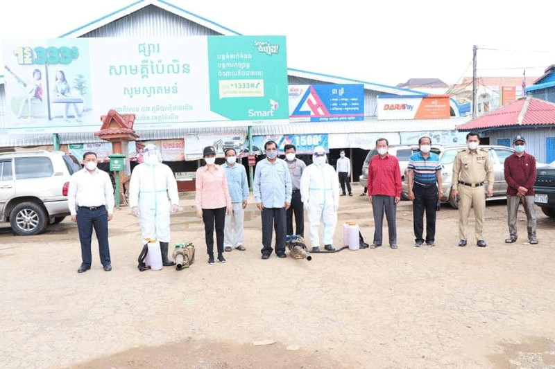 ខេត្តប៉ៃលិន ៖ នៅថ្ងៃទី៣០ ខែមេសា ឆ្នាំ២០២១ រដ្ឋបាលខេត្តប៉ៃលិន បានដឹកនាំមន្រ្តី នៃមន្ទីរសុខាភិបាលខេត្ត ធ្វើការបាញ់ថ្នាំបង្ការ និងកំចាត់មេរោគកូវីដ-១៩ នៅក្នុងបរិវេណផ្សារសាមគ្គី ហៅប៉ាហ៊ី ដើម្បីកុំឱ្យមេរោគដ៏កាចសាហាវមួយនេះ ឆ្លងចូលទៅក្នុងសហគមន៍ខេត្តប៉ៃលិន ។